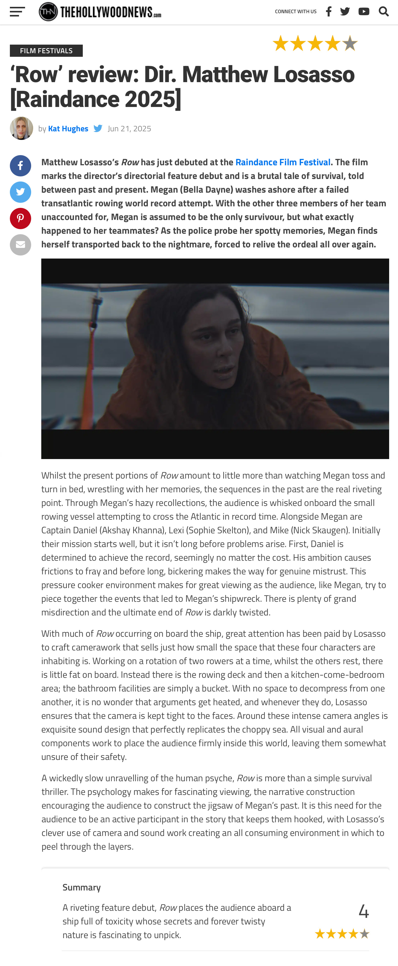 Chuffed to bits and privileged to have Row premiere at Raindance 2025
